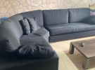 Set divani composto da divano a 3 posti più 2 singoli con materiali pelle e legno,in buoni condizioni.Prezzo trattabile