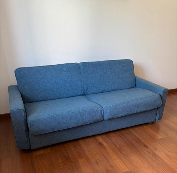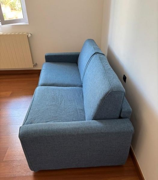 Vendo divano 3 posti letto color blu in ottime condizioni , usato pochissimo causa trasferimento largo mt 2.10 e profondo 1 mt