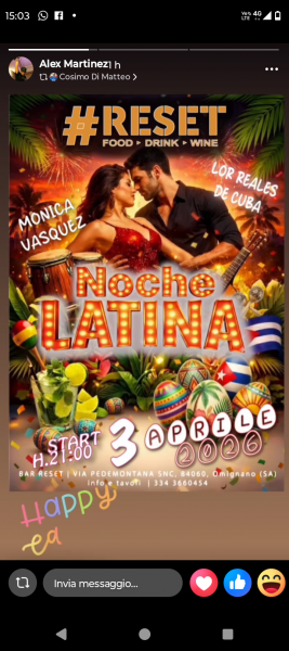 CORAZON LATINO Serata Caraibica Salsa - Bachata - Kizomba sabato 28 marzo Antros istorante Pizzeria via Quattro Querce Sala Consilina SA start ore 22,00 formula cena ore 23,00 ingresso post cena music DJ Francisco ASD Free Dance Sport Associazione Santa Barbara...
