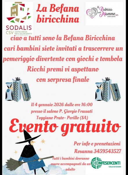 06 Gennaio Festeggiando La Befana dalle 16 alle 19 Animazione Ballon Art Trucca Bimbi Baby Dance Stuzzicheria via Pietra Novella Prato Perillo di Teggiano contatti in locandina clicca qui per tutti gli altri eventi/attrattive intorno a...