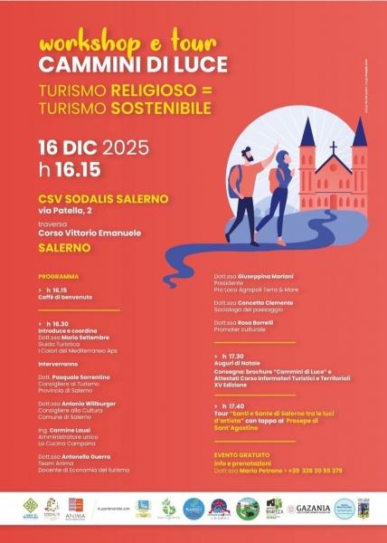 Il 6 e 7 dicembre, nella Certosa di Padula, si terrà la prima edizione di “ANIMA – Meeting Turismo Religioso”, promosso dalla Provincia di Salerno per valorizzare il patrimonio spirituale e culturale del territorio. 📰...