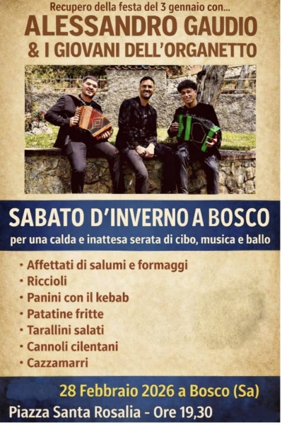 prenotazione obbligatoria entro le ore 22:00 di venerdì 13 febbraio Locanda Severino Largo Re Galantuomo, 11 Caggiano (SA) +39 0975 480490 +39 351 9419247 clicca qui per tutti gli altri eventi/attrattive intorno a te https://www.matibook.com/utente/2384-matibookeventi.html