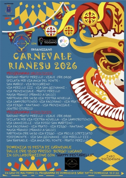 Carnevale del golfo 2026 8 - 15 febbraio 2026 Policastro Bussentino - Sapri clicca qui per tutti gli altri eventi/attrattive intorno a te https://www.matibook.com/utente/2384-matibookeventi.html