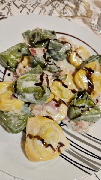 domenica 3 Agosto All’Agriturismo le Casette, Castelvetro (Mo) Fanno menù fisso 30,00 Eravamo in 2 Ci hanno portato Antipasto : crescentine con salsiccia e ciccioli… mancano 2 pezzi di ciccioli… non sono riuscita a fotografare prima 😀 2 bis di primi, tortelloni con ripieno...