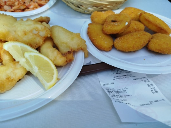 La Conchiglia, a Fossato di Vico, Perugia, nel cuore dell'Appennino e, quindi, dove non ti aspetteresti mai del buon pesce. Invece... Un antipasto con quattro stuzzichini, tra cui un' ottima sarda in saor... Un primo più che dignitoso. Quattro spiedini, due di gamberetti due di...